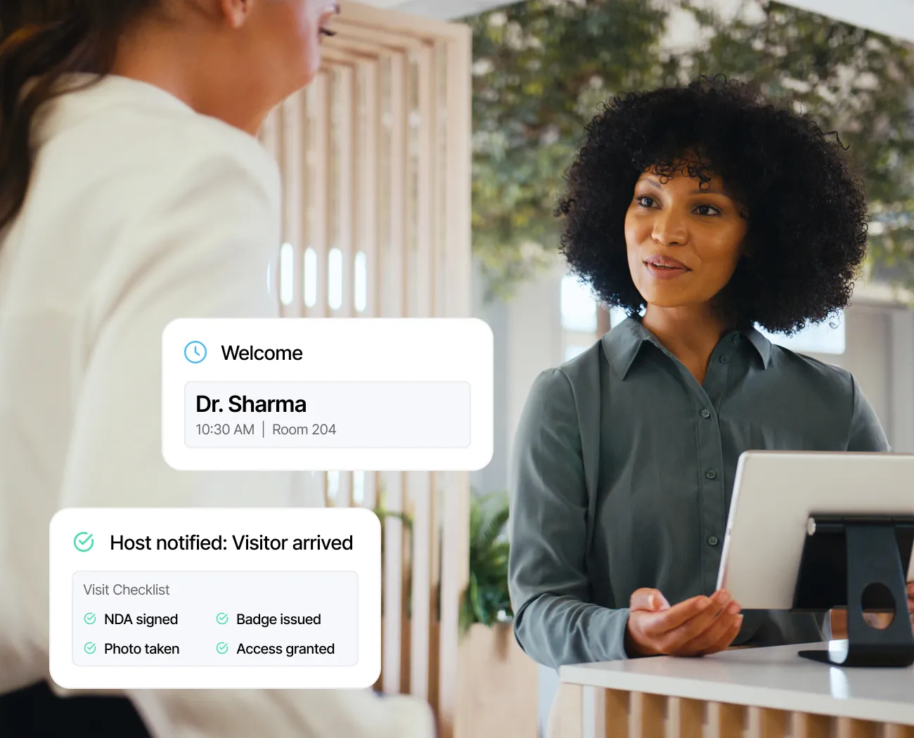 Built to welcome visitors to your facility and manage compliance at any scale. Connected intelligently to facility systems, from employee apps to facility dashboards.